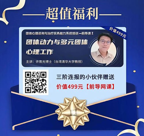 超值福利大放送:现在报名“2026团体心理咨询与治疗实务能力系统培训”,三阶连报并完成缴费,即可免费获赠价值499元前导网课!名额有限,抓住提升良机!
