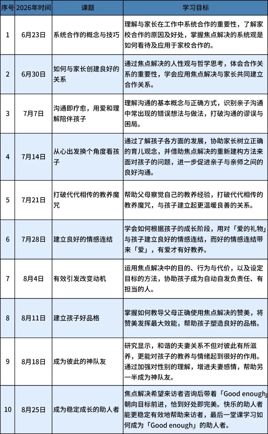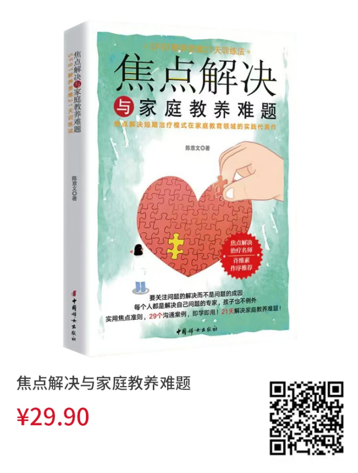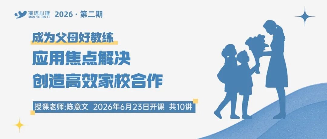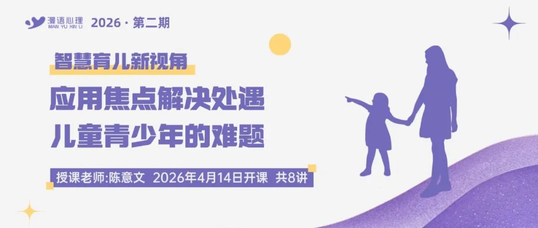 为此,漫语心理特别邀请了台湾知名心理学专家陈意文老师,开设焦点解决取向专题课程。陈老师将以其深厚的专业知识和丰富的实践经验,为学员们打开一扇通往高效、积极心理干预的新大门,助力大家更好地应对儿童青少年心理挑战,共同守护孩子们的健康成长。