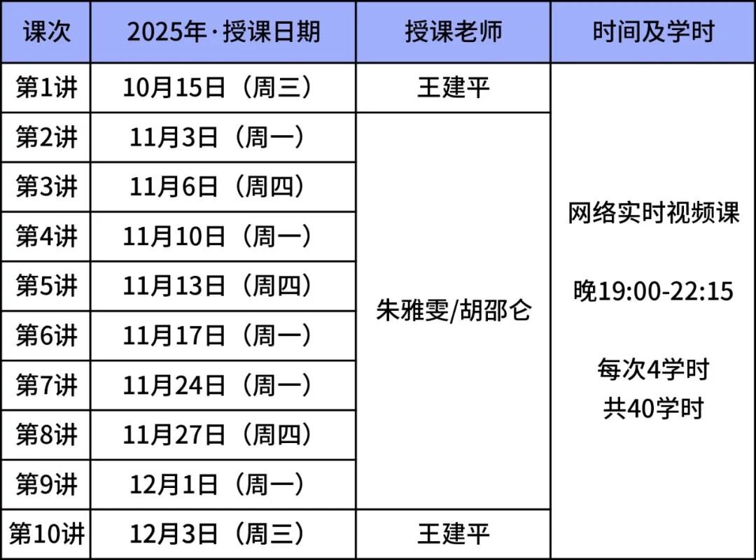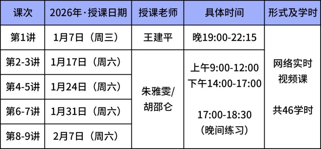 备:以上时间为【预定】,如有调整请关注最新课程动态或通知。
