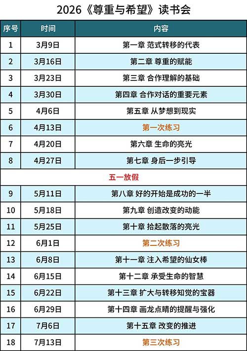 2026年3月-7月,周一19:30-21:00,共18次,如遇国家法定节假日,顺延一次。读书会开始后费用不退,请根据个人情况安排学习。