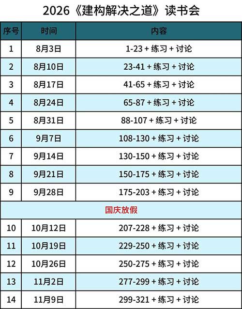 2026年8月-11月,周一19:30-21:00,共14次,如遇国家法定节假日,顺延一次。读书会开始后费用不退,请根据个人情况安排学习。