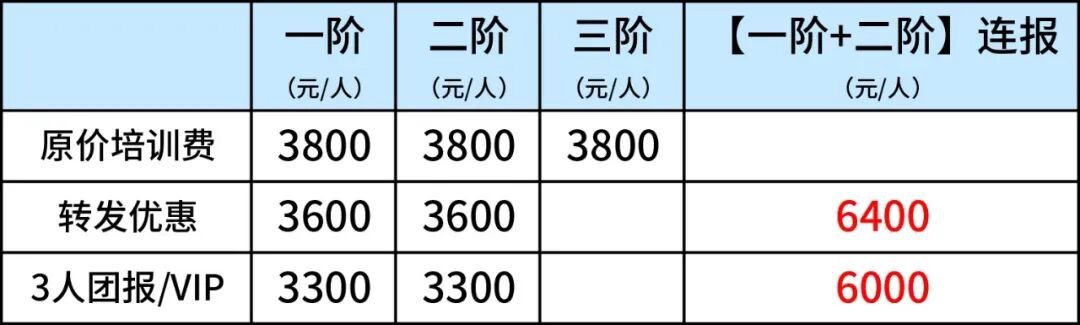 说明:将本文转发到200人以上群,截图发送给报名助手,可享受“转发优惠”。转发后若一阶二阶连报可享受“连报优惠”;转发后若满足一阶二阶3人团报,可享受“团报优惠”。全日制在校学生优惠费用另询。