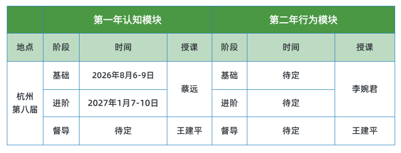 ▌培训证书:完成单阶段培训后,可申请获得单阶段培训证书;或者完成【认知模块】和【行为模块】培训后,可分别申请获得模块的培训证书。由实际授课老师签字。