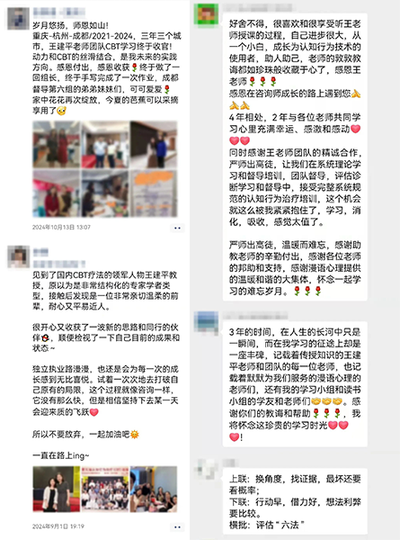 持续精进:项目为学员搭建持续成长、实践与蜕变的平台,可与多领域的专家同行交流,激发潜能,实现在CBT专业深度与广度的双重提升。