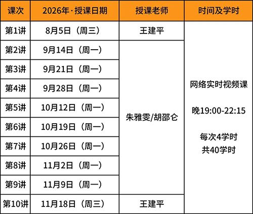 备:以上时间为预定,如有调整请关注最新课程动态或通知。