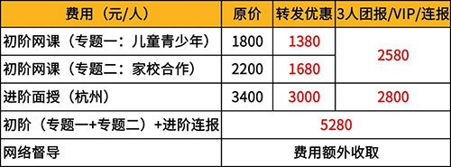 1.报名优惠:将本文转发到200人以上心理学相关的群,截图发送给报名助手,可享受“转发优惠价”;专题连报或阶段连报,可享受“连报优惠价”。转发后若满足3人团报,可享受“团报优惠价”。